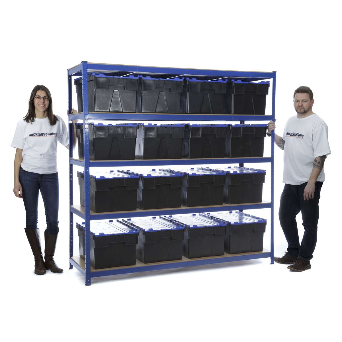 Entry level shelving unit with CROC storage boxes and a load capacity from 200KG Per Shelf. Ideal for warehouses , offices , workshop , garages , domestic use.