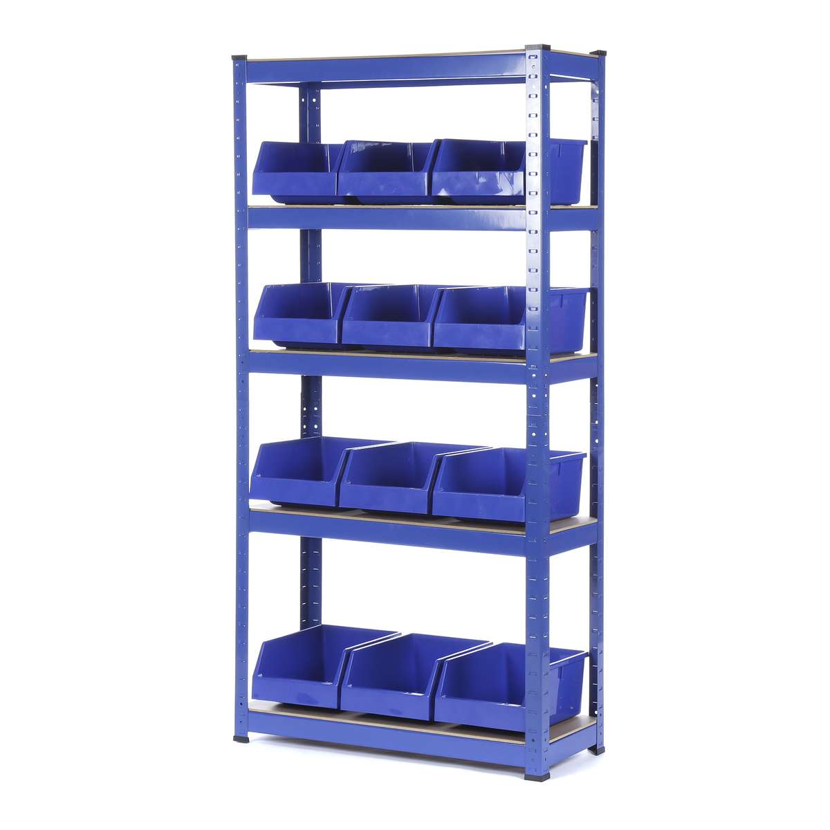 Heavy Duty Steel Shelving 1500mm H x 750mm W x 300mm D – 175KG UDL with 12 Blue Picking Parts Bins*