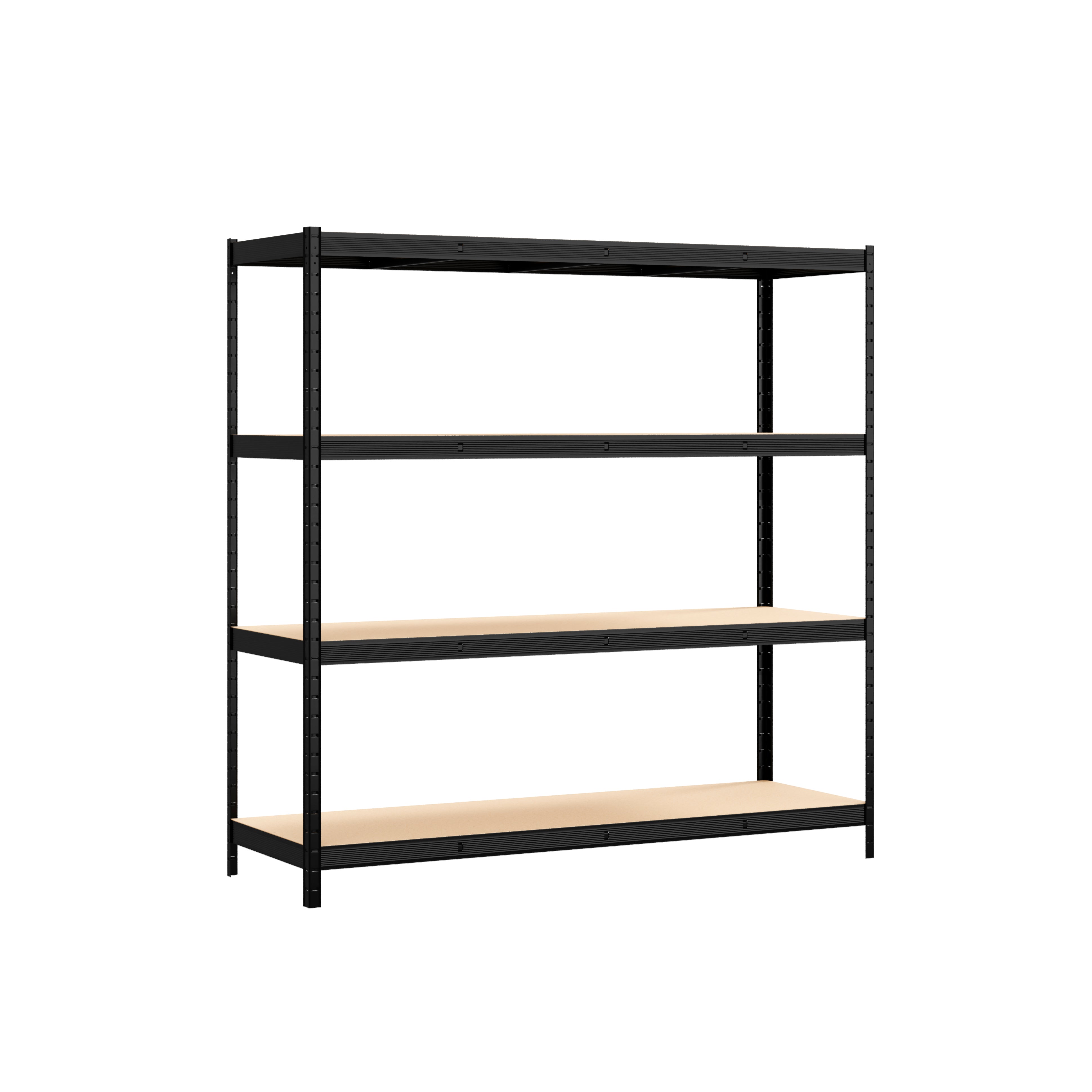 PROFESSIONAL-GRADE STORAGE FOR SERIOUS LOADS This heavy-duty shelving system is designed for high-demand environments and features four ultra-strong shelf levels made from 9mm MDF. Ideal for organising tools, equipment and stock in garages, workshops and warehouses. Much stronger than our competitors 6mm thick.