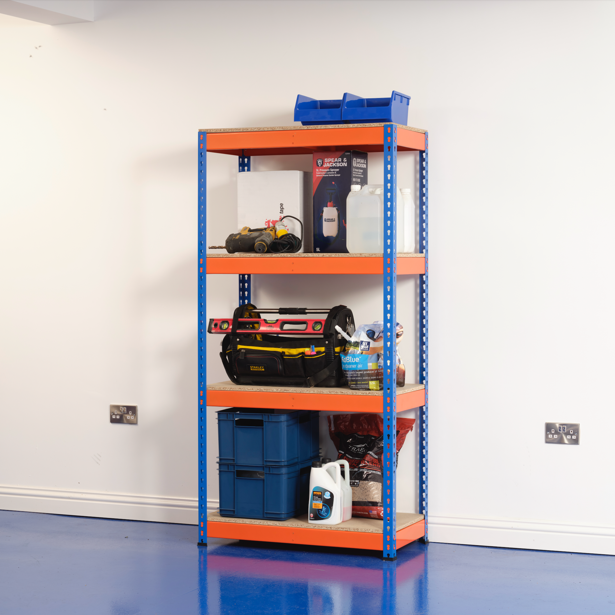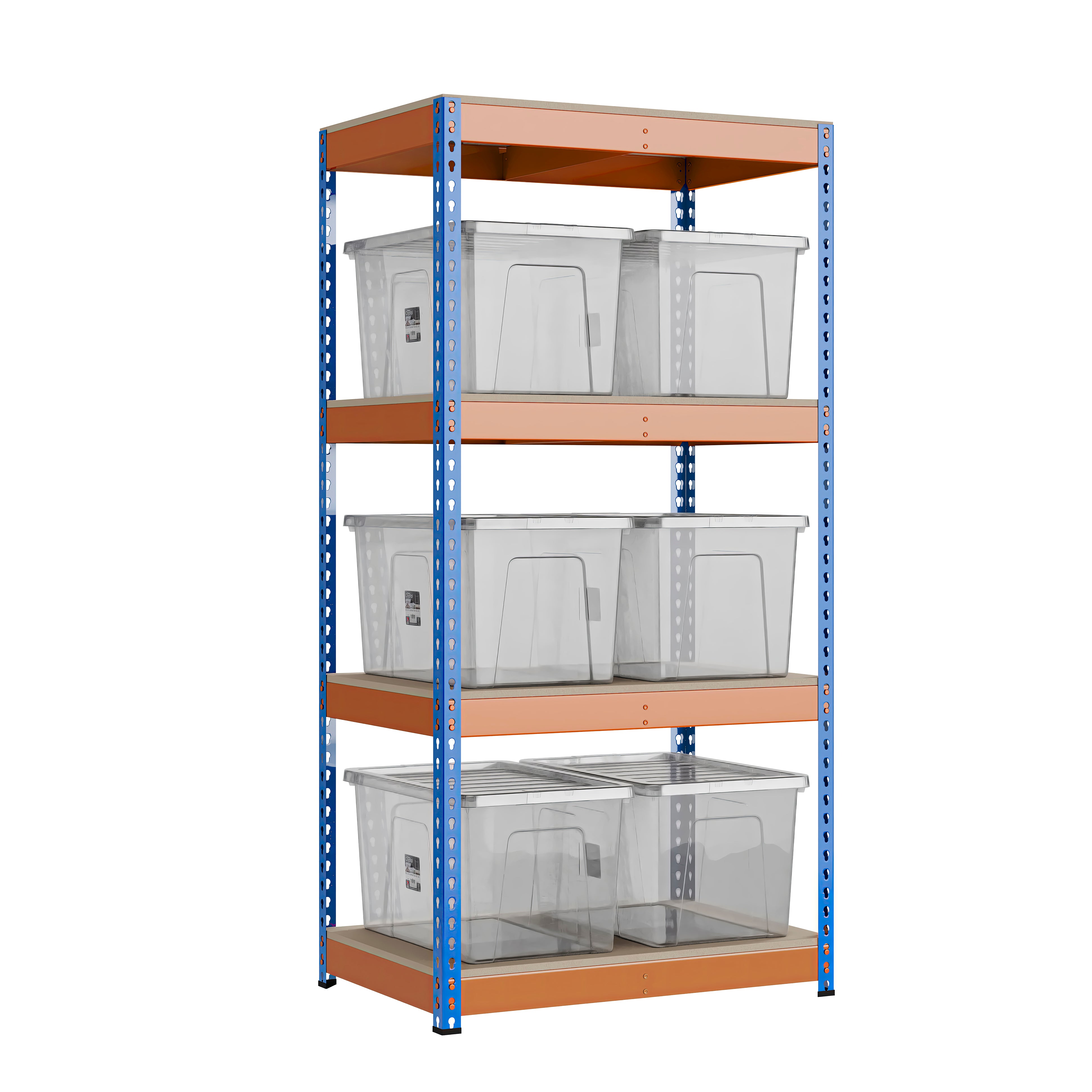 • Sleek Finish: The blue and orange powder-coated steel gives the racking a professional, industrial look while providing added protection against corrosion.