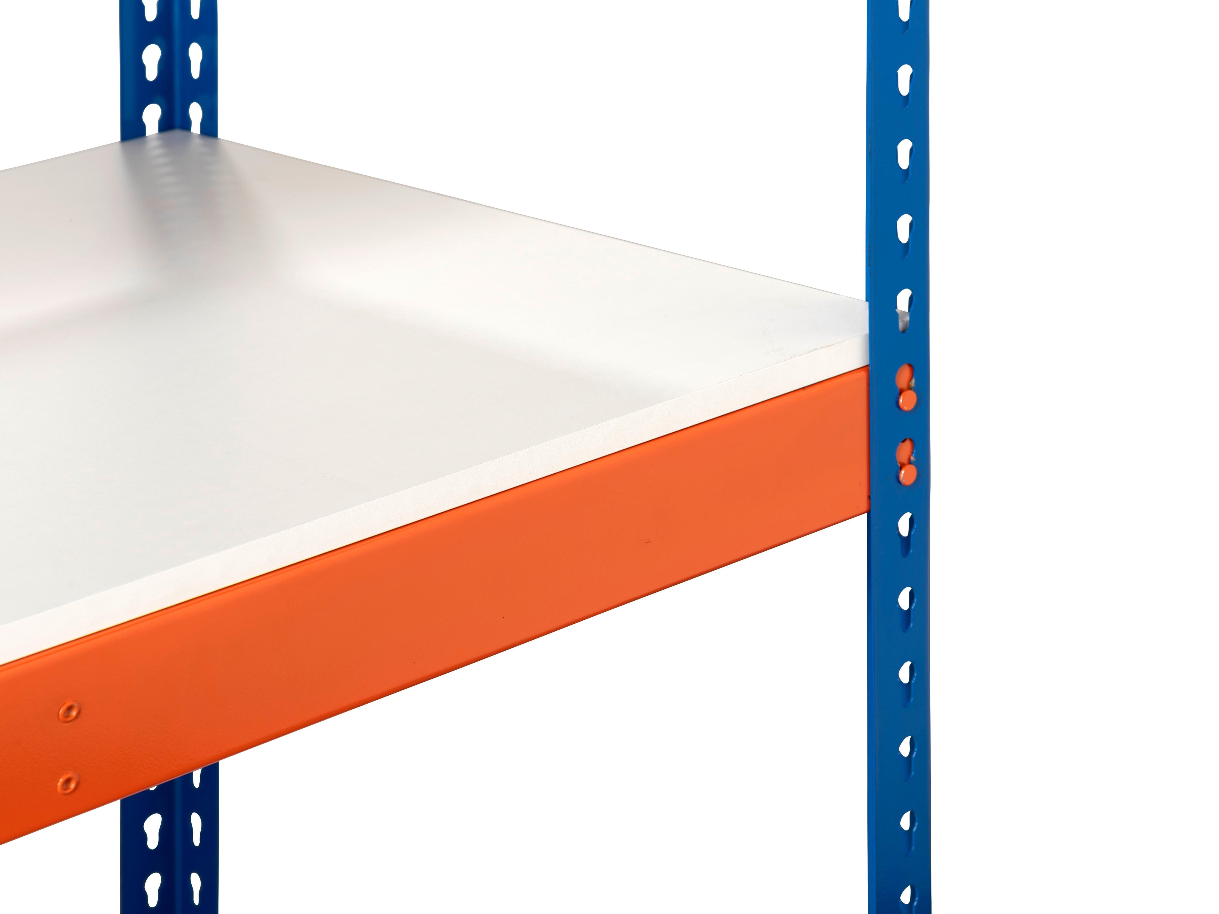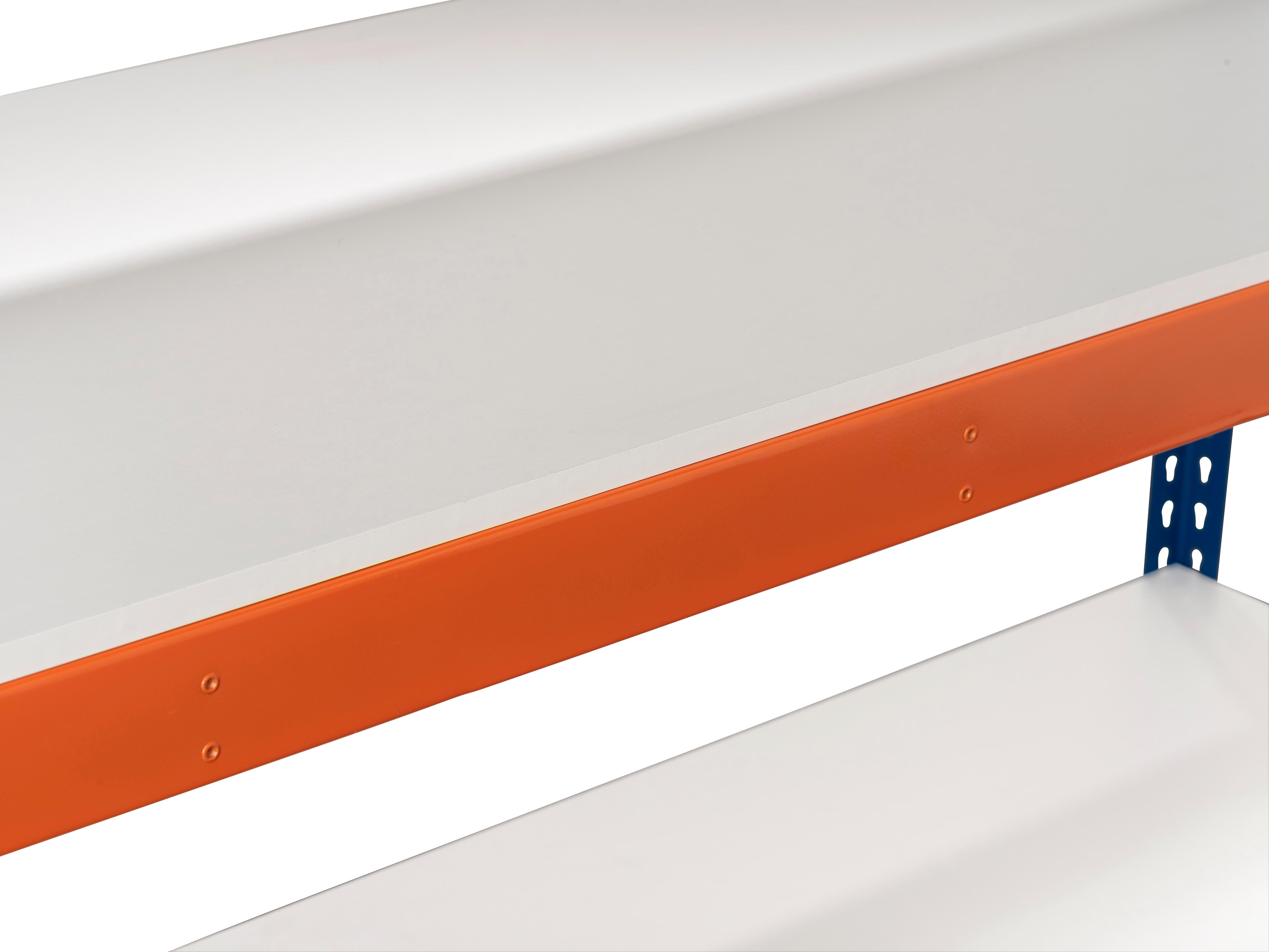 • Sleek Finish: The blue and orange powder-coated steel gives the racking a professional, industrial look while providing added protection against corrosion.