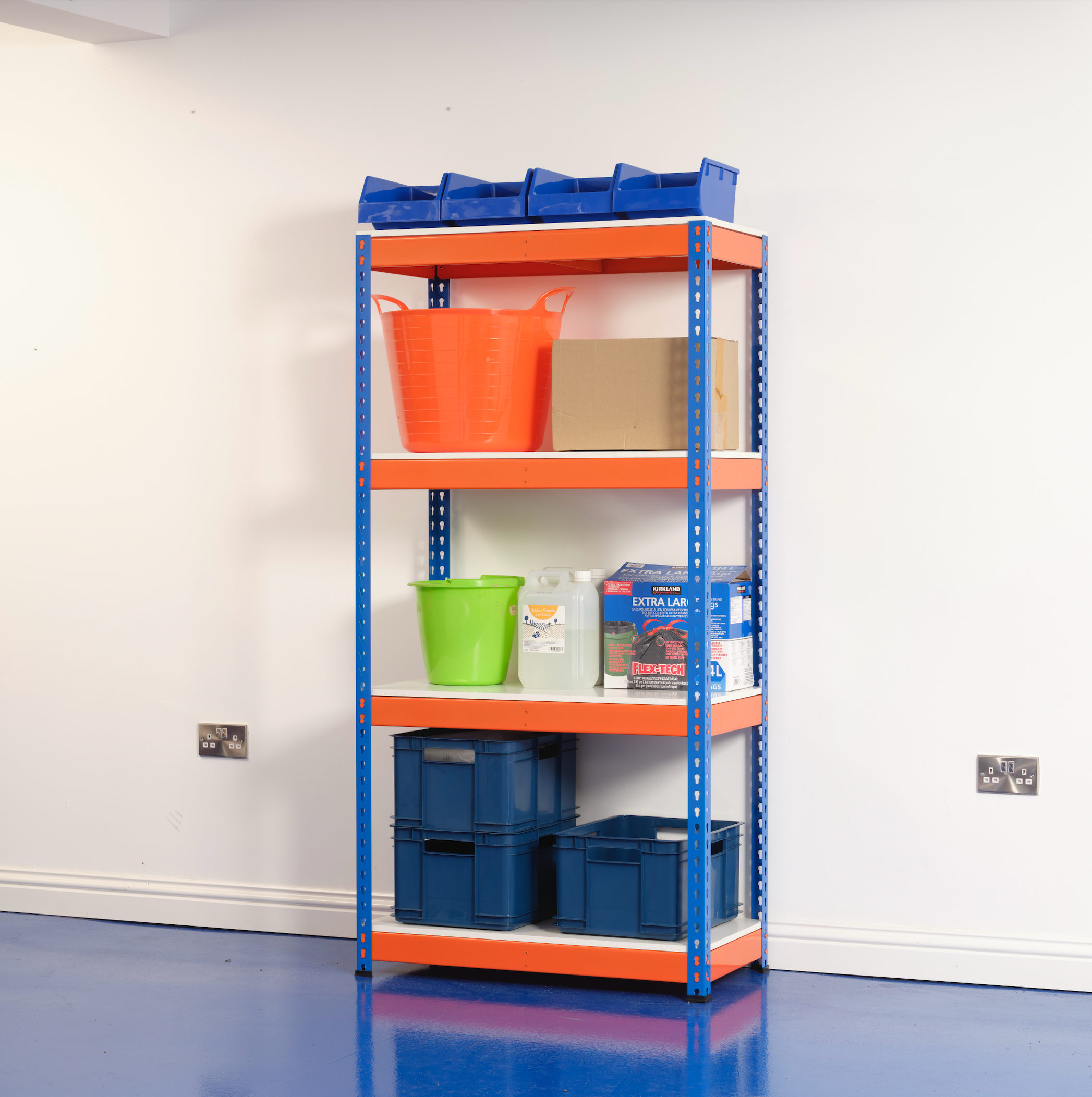 • Sleek Finish: The blue and orange powder-coated steel gives the racking a professional, industrial look while providing added protection against corrosion.