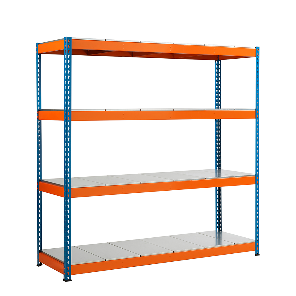 Introducing our industrial racking unit with steel shelves, the idea storage solution to organise your garage, utility room, business or warehouse. Manufactured from high grade steel and designed for easy assembly with no nuts or bolts. Uniquely designed so each unit can be simply joined together in a bay either back to back or side to side using M6 Nut and bolts.